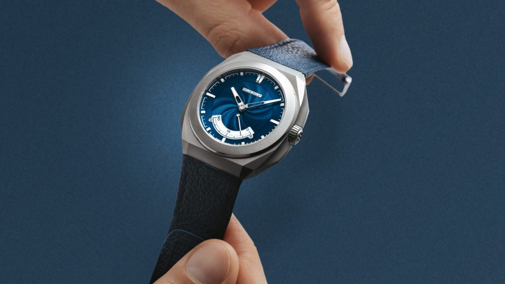 Cadran – Colimaçone traditionnel, bleu, décalque avec Super-LumiNova, applique rétrograde, applique logo et aiguilles en titane grade 5 décoré main